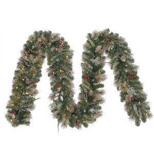 12 ft. Battery Operated Roosevelt Artificial Garland with 80 Clear LED Lights-GTC0M3V90L00 – Description