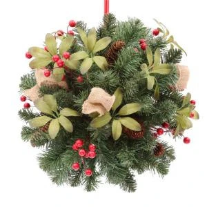 14 in. Unlit Artificial Kissing Ball with Red Berries and Pinecones-2168200HD – Description