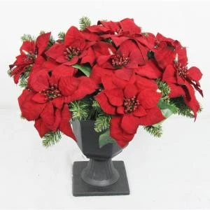- Decorated with realistic glittered poinsettias