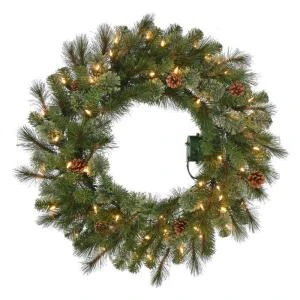 30 in. Pre-Lit B/O LED Alexander Pine Artificial Christmas Wreath x 140 Tips with 50 Warm White Lights-GD26M5311L00 – Description