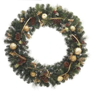 48 in. Unlit Golden Holiday Artificial Wreath-2258390HD – Description