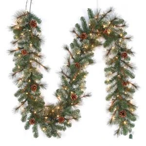 9 ft. Pre-Lit LED Alexander Pine Artificial Christmas Garland x 165 Tips with 100 UL Plug-In Outdoor Warm White Lights-GT90M5311L00 – Description
