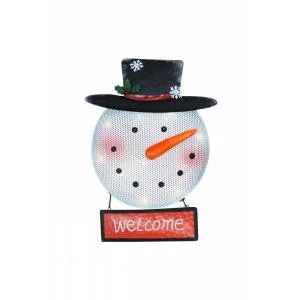 Alpine 24 in. Metal ‘Welcome’ Snowman Sign with 13 LED Lights-NOK138HH – Description