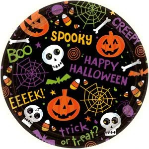 Amscan 7 in. x 7 in. Spooktacular Round Paper Plate (60-Count)-749484 – Description
