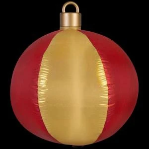 Gemmy 27.17 in. D x 27.17 in. W x 30.71 in. H Inflatable Mixed Media-Hanging Red and Gold Ball Ornament-39682 – Description