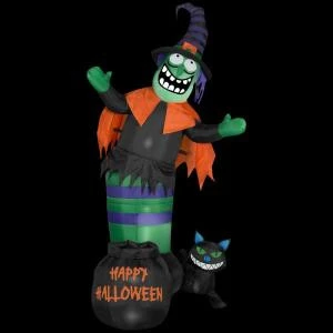 Gemmy 46.06 in. W x 26.77 in. D x 65.75 in. H Animated Inflatable Wobbling Witch Scene-63680X – Description