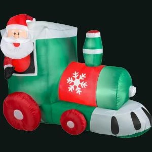 Gemmy 53.94 in. L x 42.13 in. W x 36.61 in. H Inflatable Santa in Train-35301X – Description