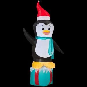 Gemmy 7 ft. H Inflatable Penguin with Gift Box-86198X – Description