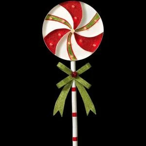 Gerson 39 in. H Battery Operated Lighted Metal Holiday Pinwheel Lollipop Yard Stake-2273260HD-2B – Description