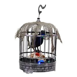 Home Accents Holiday 10 in. Animated Talking Raven in Cage with Skull-6346-13817HD – Description