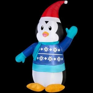 Home Accents Holiday 31.10 in. W x 18.11 in. D x 42.13 in. H Lighted Inflatable Outdoor Penguin in Sweater-39414 – Description