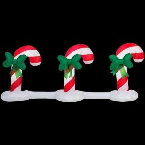 Home Accents Holiday 66.14 in. W x 14.57 in. D x 24.02 in. H Lighted Inflatable Candy Cane Pathway (3-Count)-39395 – Description