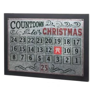 - 22 in. L x 16.25 in. H metal Christmas countdown calendar