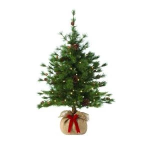 36 in. Pre-Lit LED Bristle Cone Pine Burlap Artificial Table Tree 9318010610 – Specifications