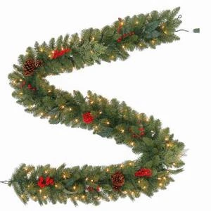 Martha Stewart Living 9 ft. Winslow Artificial Garland with 100 Clear Lights-GT90P4598C00 – Description