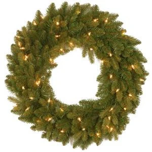 National Tree Company 24 in. Avalon Spruce Artificial Wreath with Clear Lights-PEAV7-300-24W-1 – Description