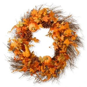 National Tree Company 28 in. Pumpkin Wreath-RAHV-LFG31293 – Description