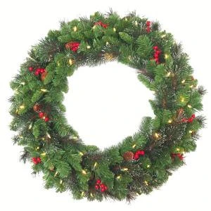 30 in. Crestwood Spruce Artificial Christmas Wreath with 70 White Battery Operated LED Lights with Timer CW7-306-30WBC1 – Specifications