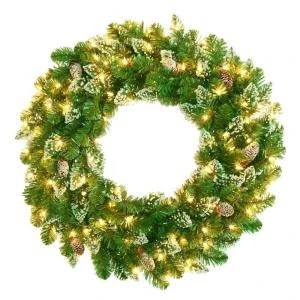 National Tree Company 30 in. Crystal Spruce Artificial Wreath with Glittered Tips, Pine Cone, 100 Clear Lights-CRY10-300-30W – Description