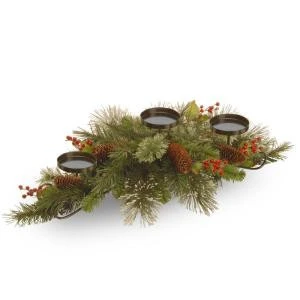 National Tree Company 30 in. Wintry Pine Centerpiece and Candle Holder-WP3-832-30C-B – Description