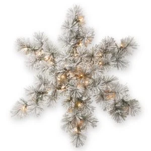 National Tree Company 32 in. Snowy Bristle Pine Artificial Snowflake with Battery Operated Warm White LED Lights-SNP1-300-32SB-1 – Description