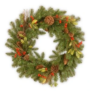 National Tree Company Decorative Collection Berry Leaf 24 in. Artificial Wreath-DC3-184-24W-1 – Description